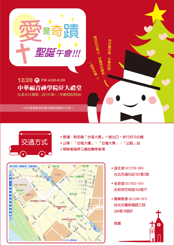 聖誕節目不外乎詩歌、戲劇、短講、抽獎…。因此愛演(又有花導在)的喜樂教會再加上頌主堂的懷慧&榮美,扛下了戲劇這重要的責任…。但是誰知道預備的過程卻是一波三折呢~?(或許上帝知道吧…XD)